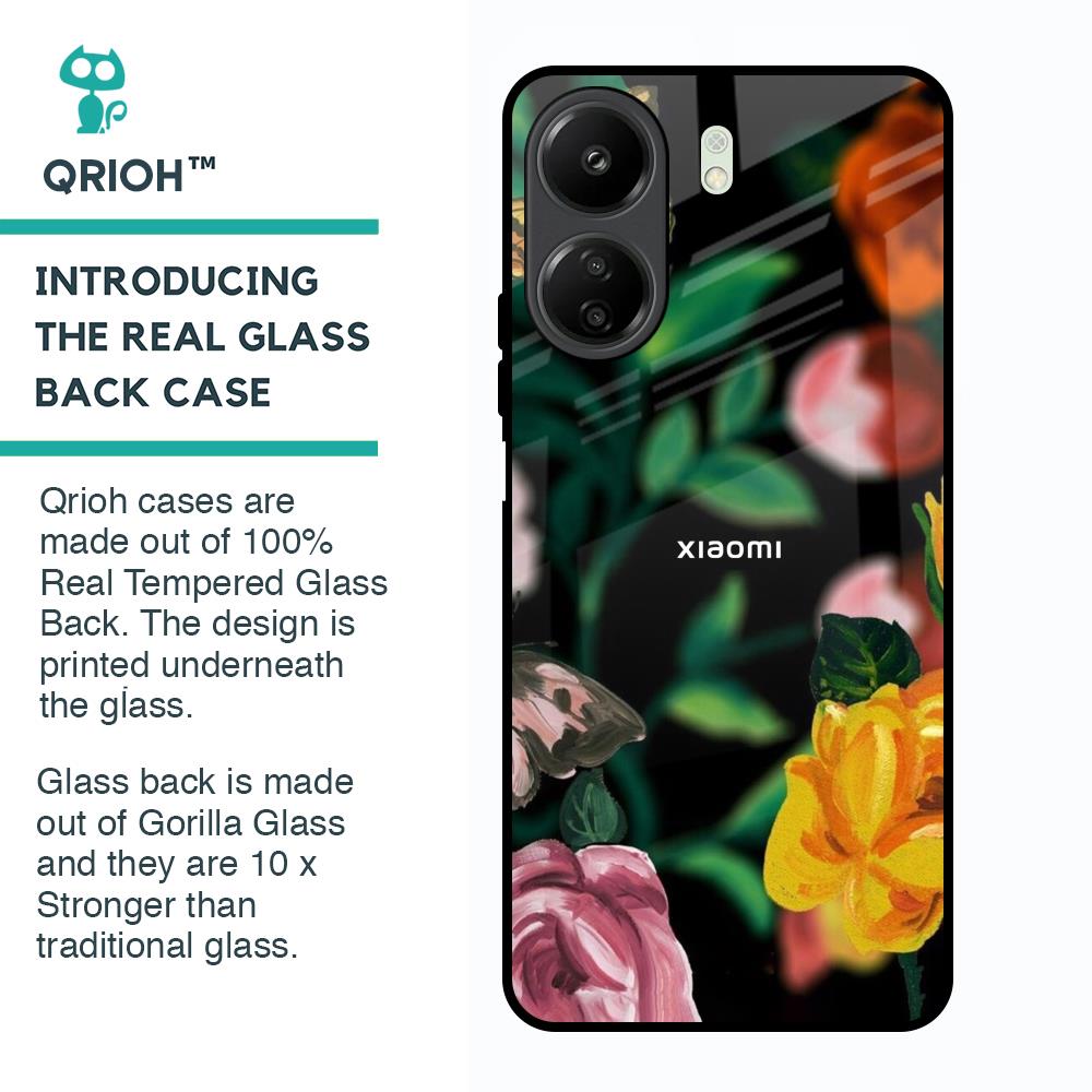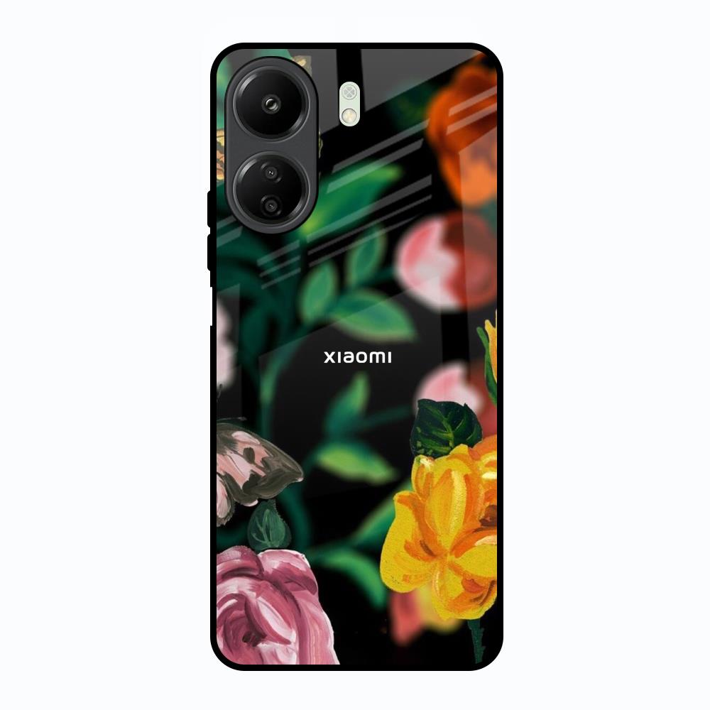 Flowers & Butterfly Glass Case for Redmi 13C