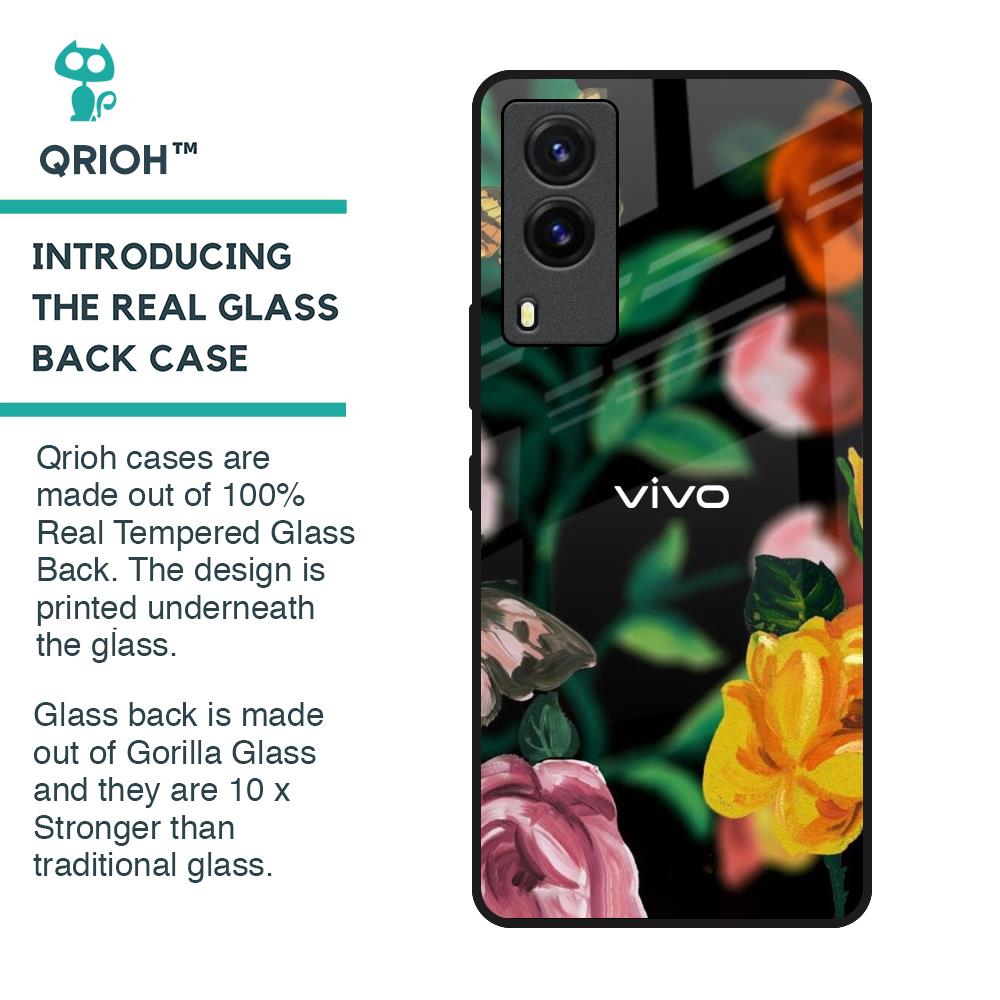Flowers & Butterfly Glass Case for Vivo V21e