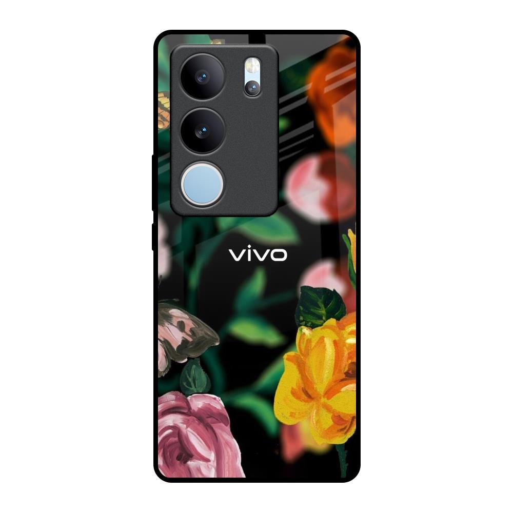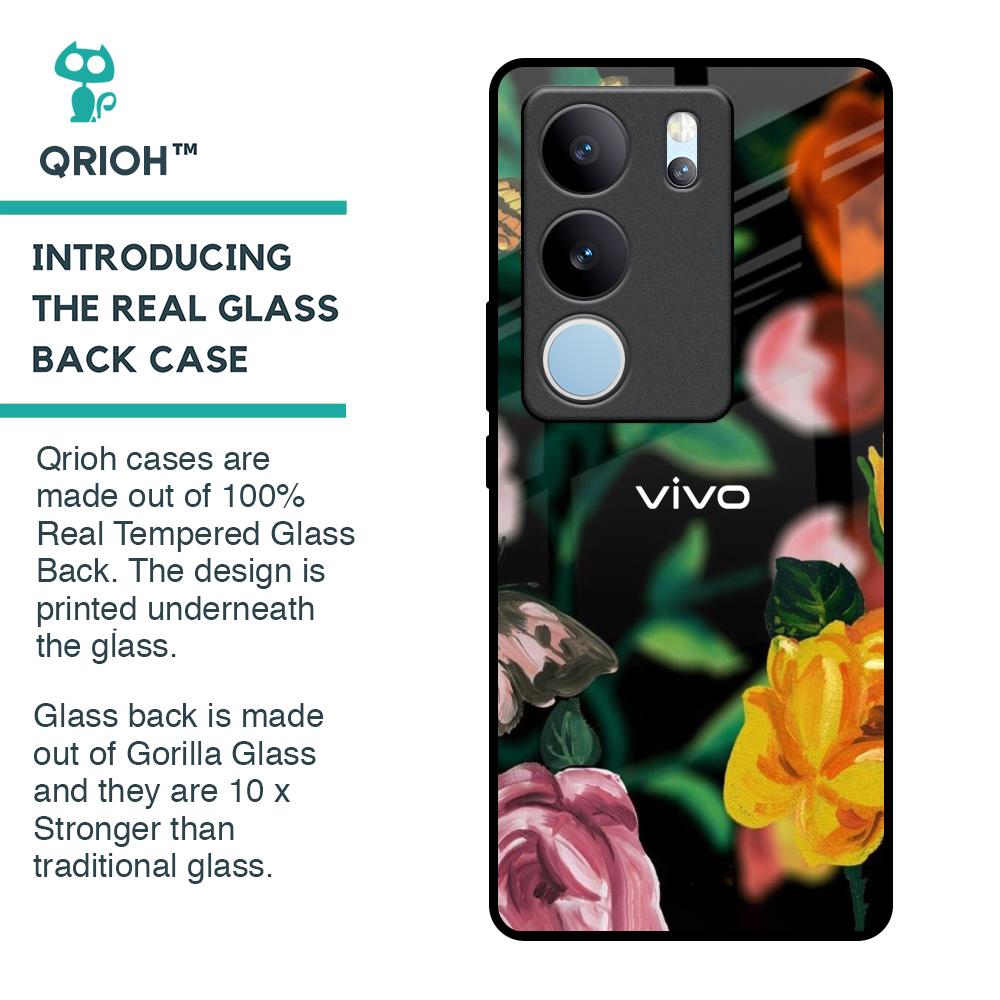 Flowers & Butterfly Glass Case for Vivo V29 Pro 5G