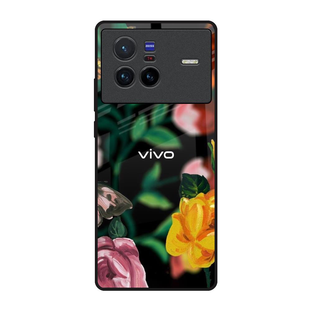 Flowers & Butterfly Glass Case for Vivo X80 5G