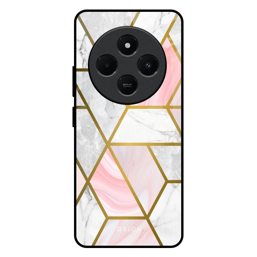 Geometrical Marble Glass Case for Redmi 14C 5G