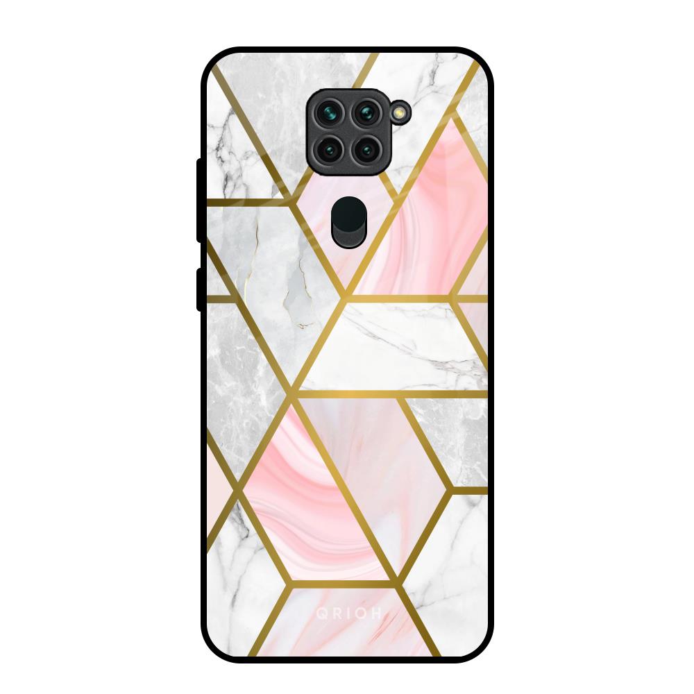 Geometrical Marble Glass Case for Redmi Note 9