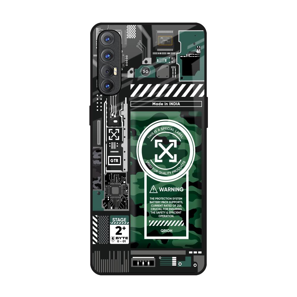 Green Camo Circuit Glass Case for Oppo Reno 3 Pro