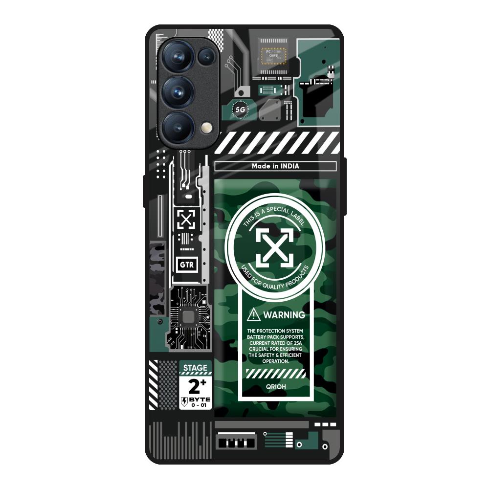 Green Camo Circuit Glass Case for Oppo Reno5 Pro