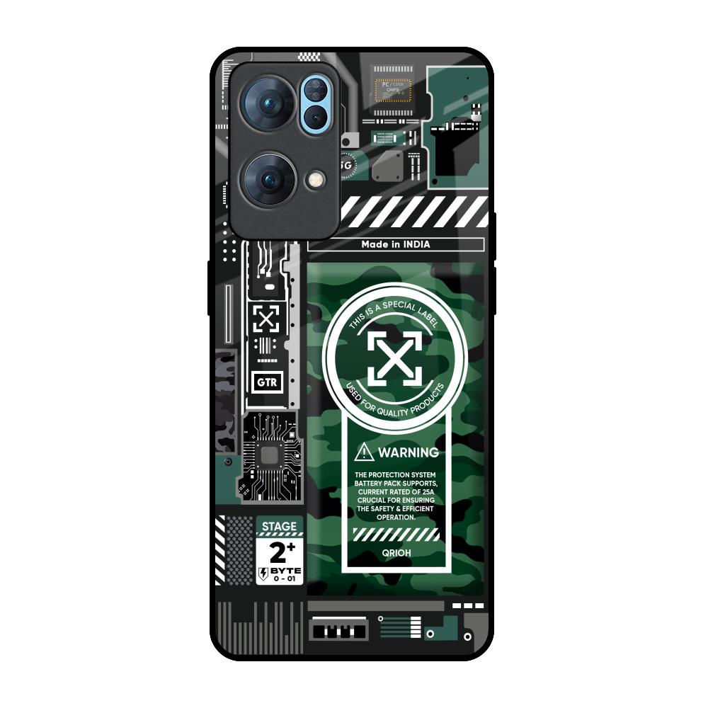 Green Camo Circuit Glass Case for Oppo Reno7 Pro 5G