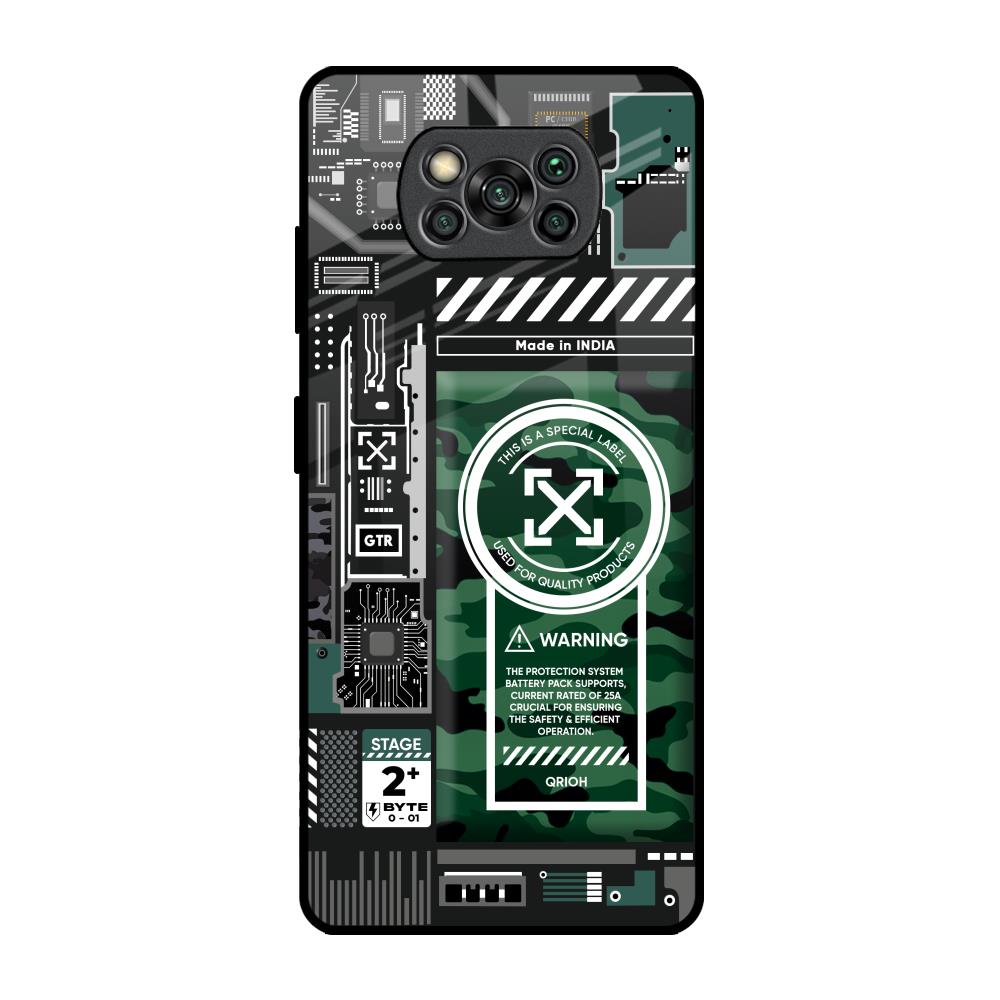 Green Camo Circuit Glass Case for Poco X3 Pro