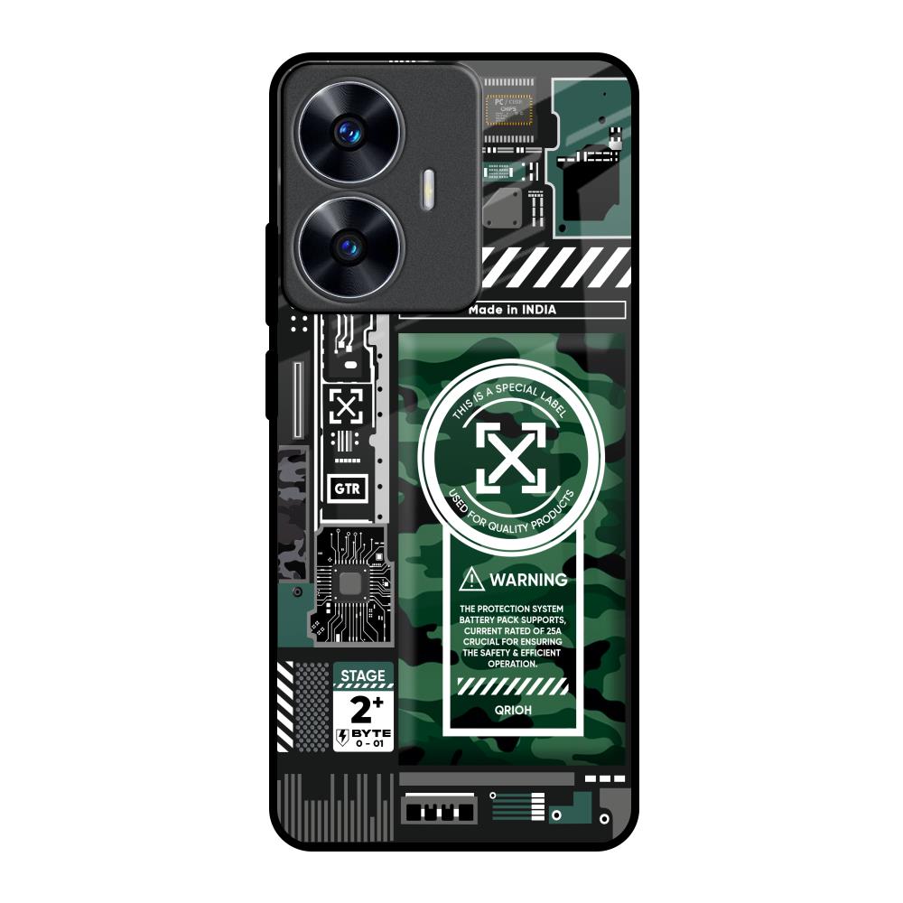 Green Camo Circuit Glass Case for Realme C55