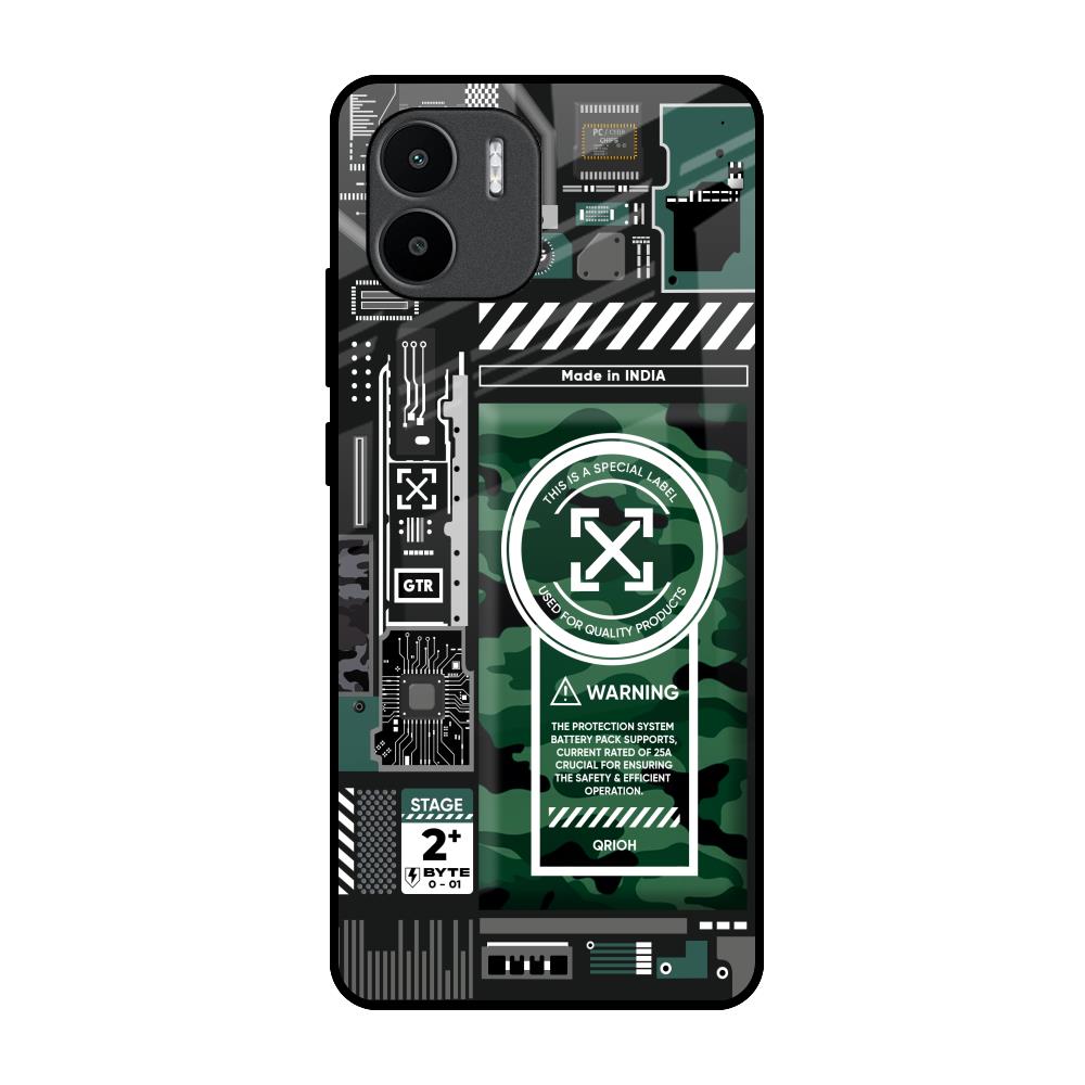 Green Camo Circuit Glass Case for Redmi A1