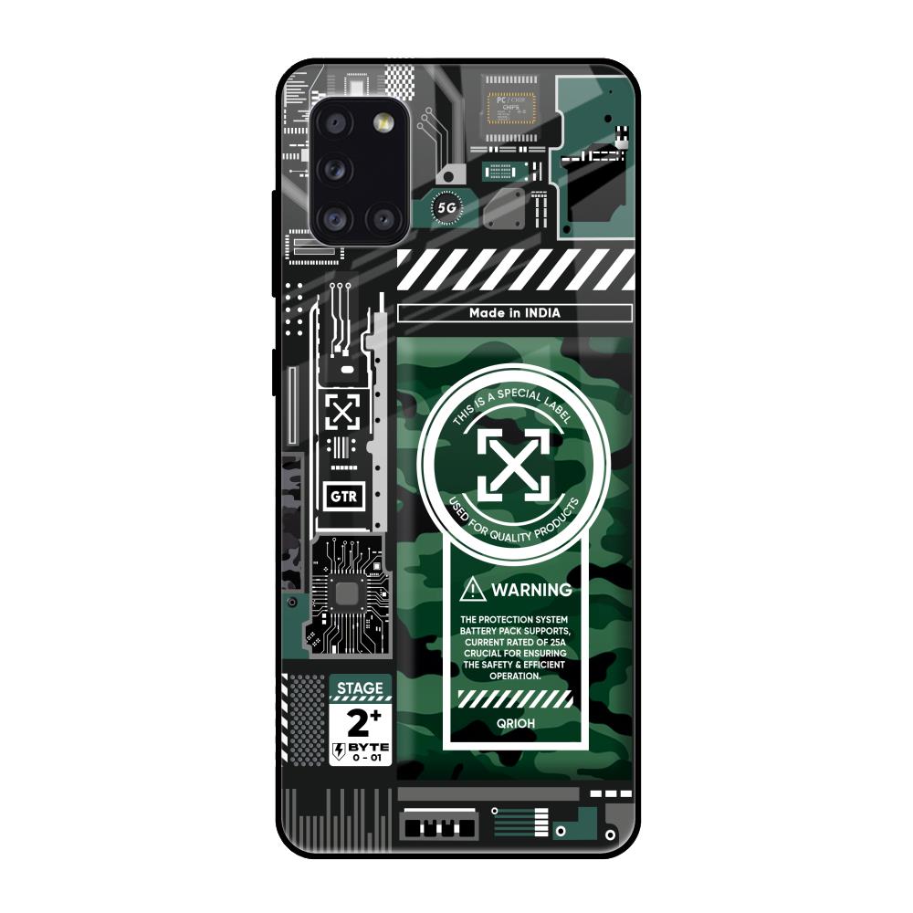 Green Camo Circuit Glass Case for Samsung Galaxy A31