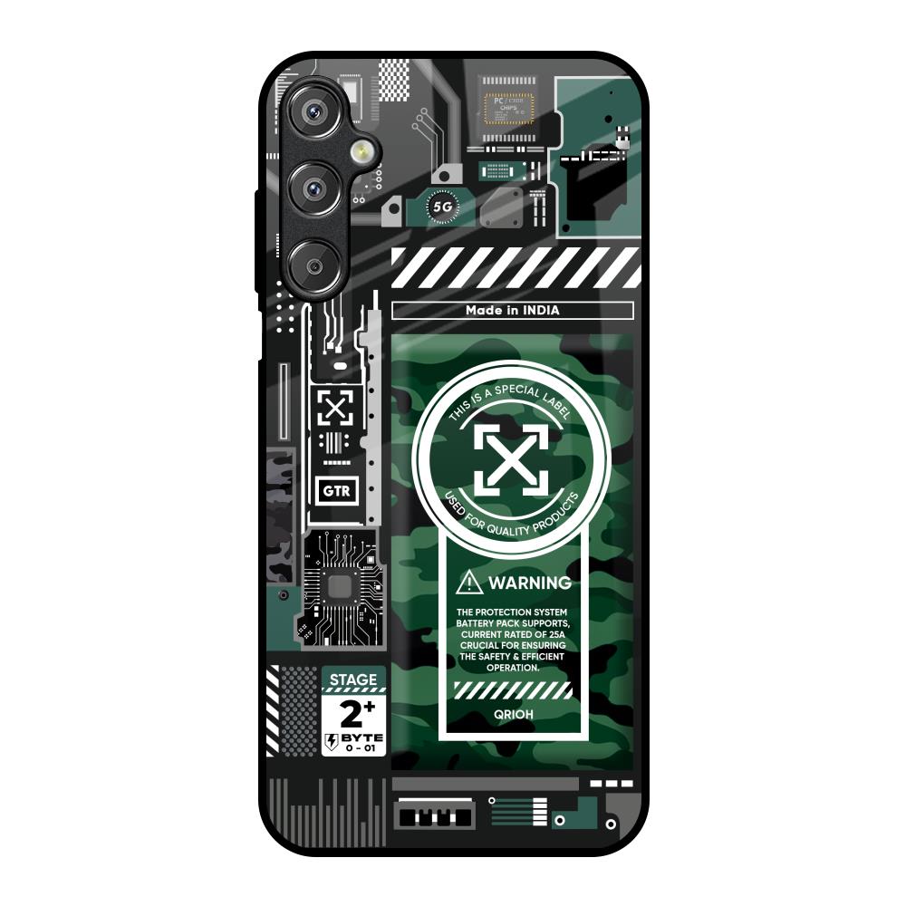 Green Camo Circuit Glass Case for Samsung Galaxy F15 5G