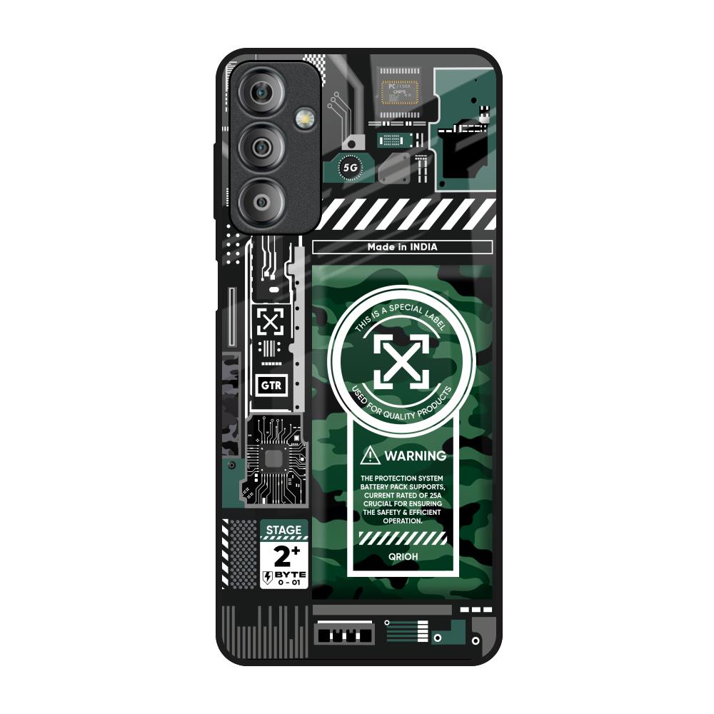 Green Camo Circuit Glass Case for Samsung Galaxy F23 5G