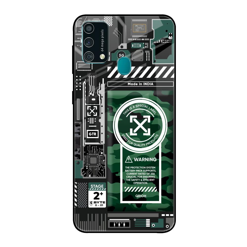 Green Camo Circuit Glass Case for Samsung Galaxy F41