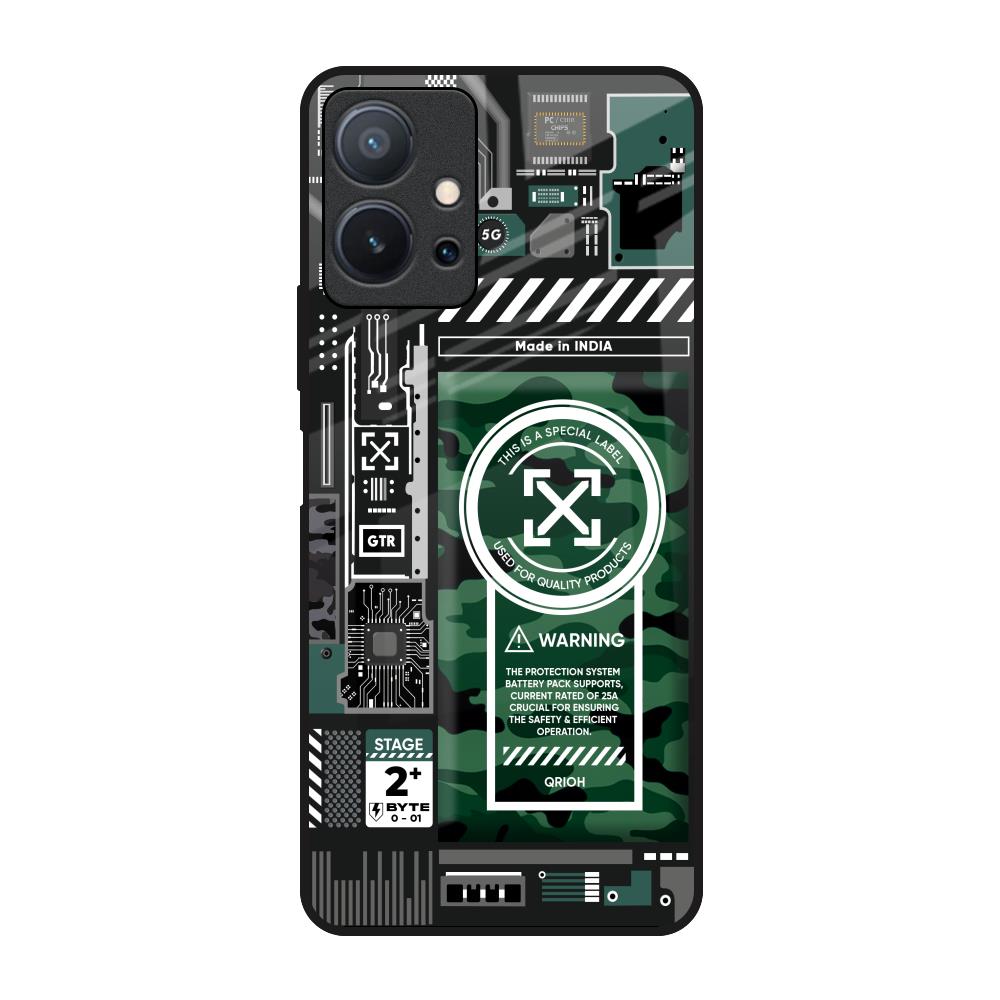Green Camo Circuit Glass Case for Vivo T1 5G