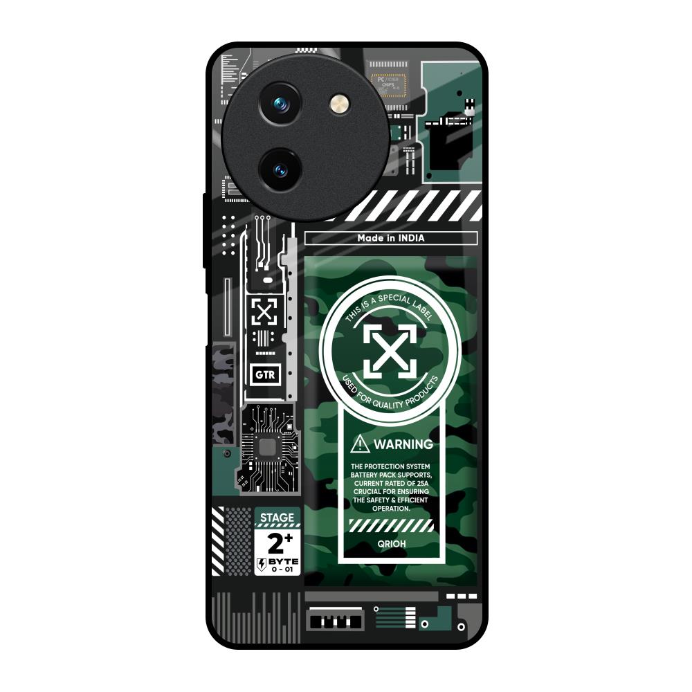Green Camo Circuit Glass Case for Vivo T3X 5G