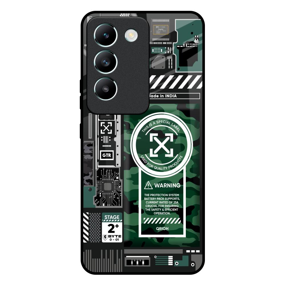 Green Camo Circuit Glass Case for Vivo Y200e 5G