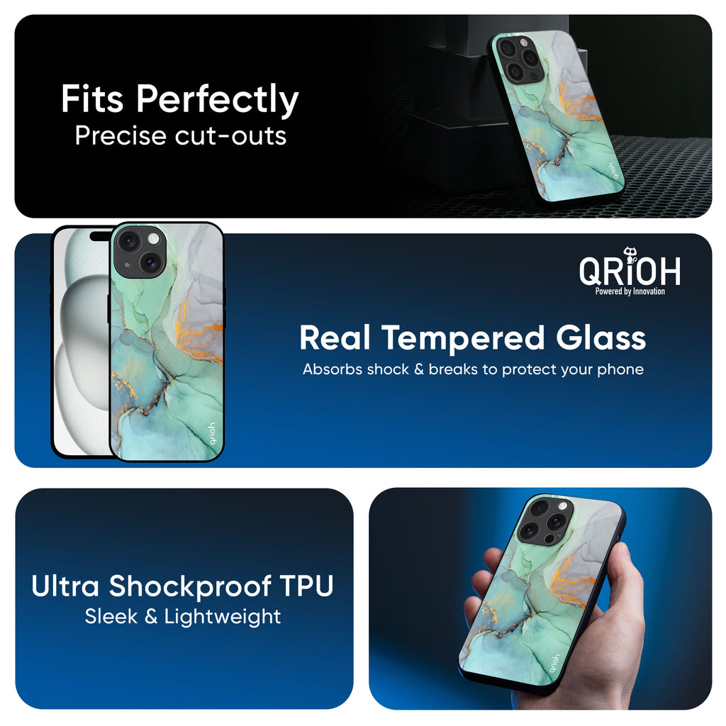 Green Marble Glass Case for iPhone 16 Pro