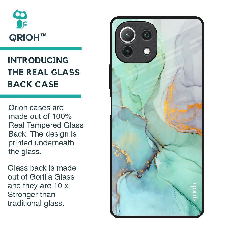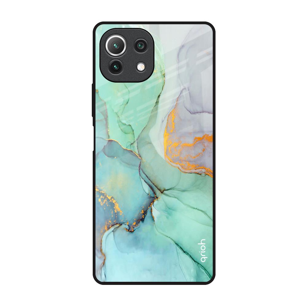 Green Marble Glass Case for Mi 11 Lite