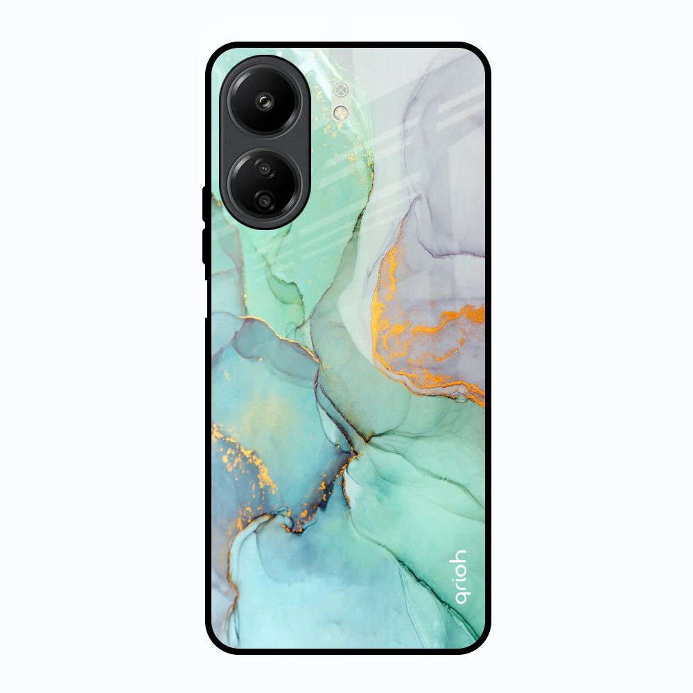Green Marble Glass Case for Redmi 13C