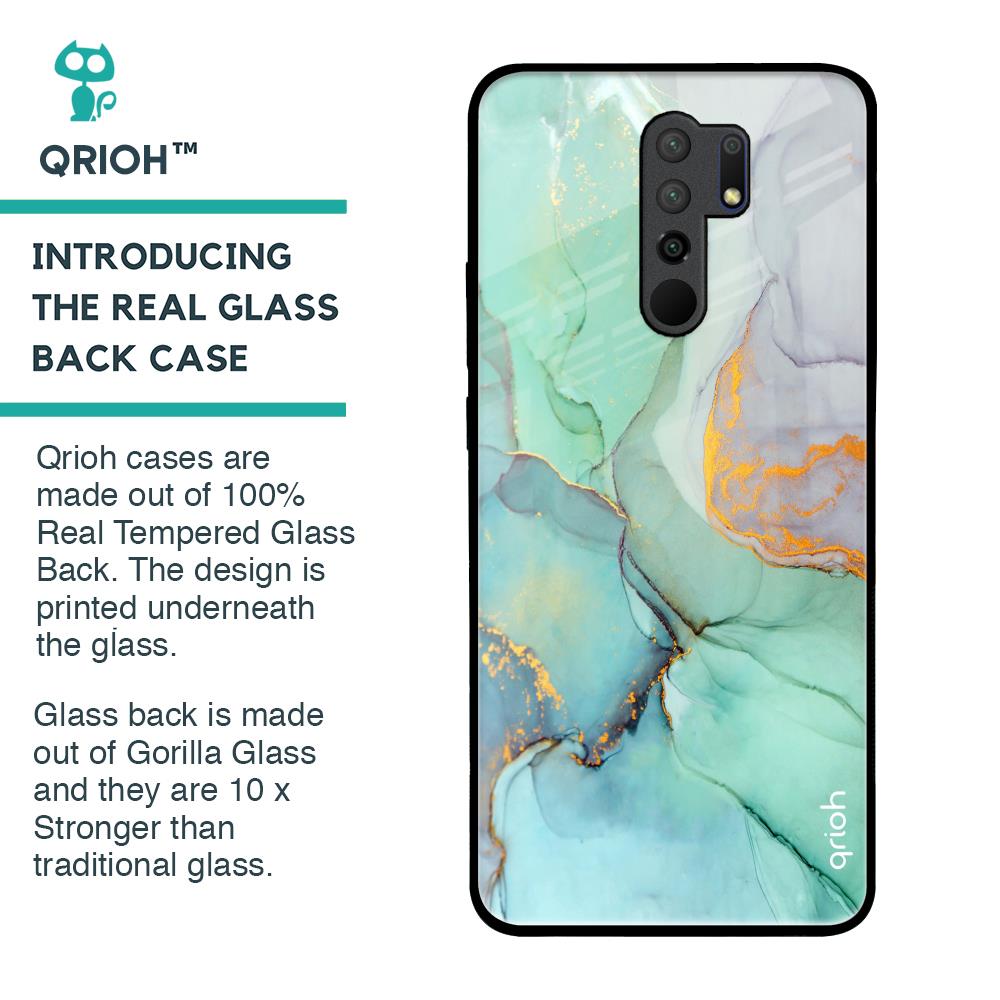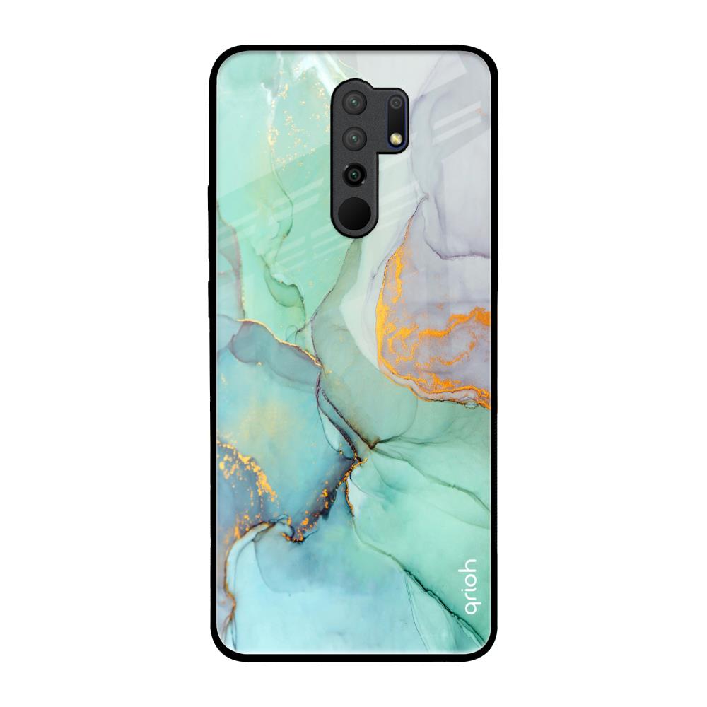 Green Marble Glass Case for Redmi 9 prime