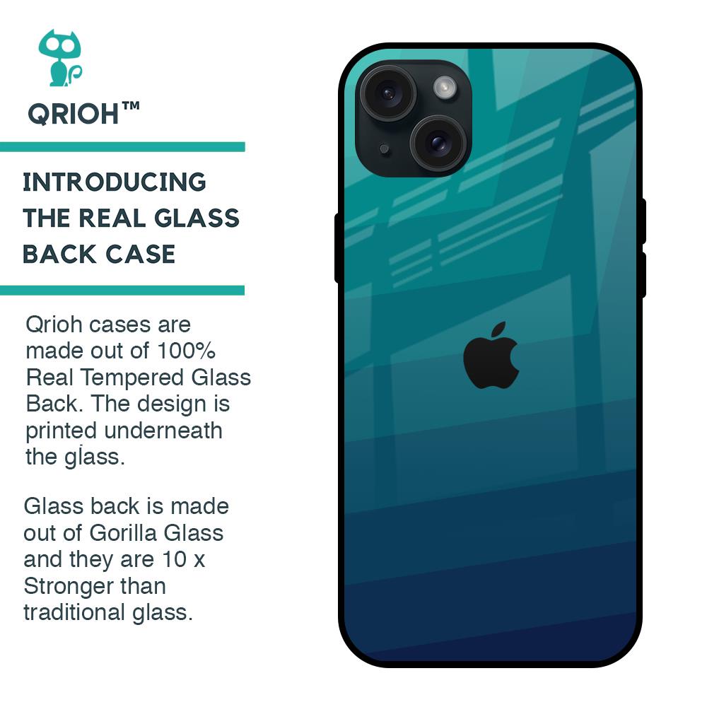 Green Triangle Pattern Glass Case for iPhone 15 Plus