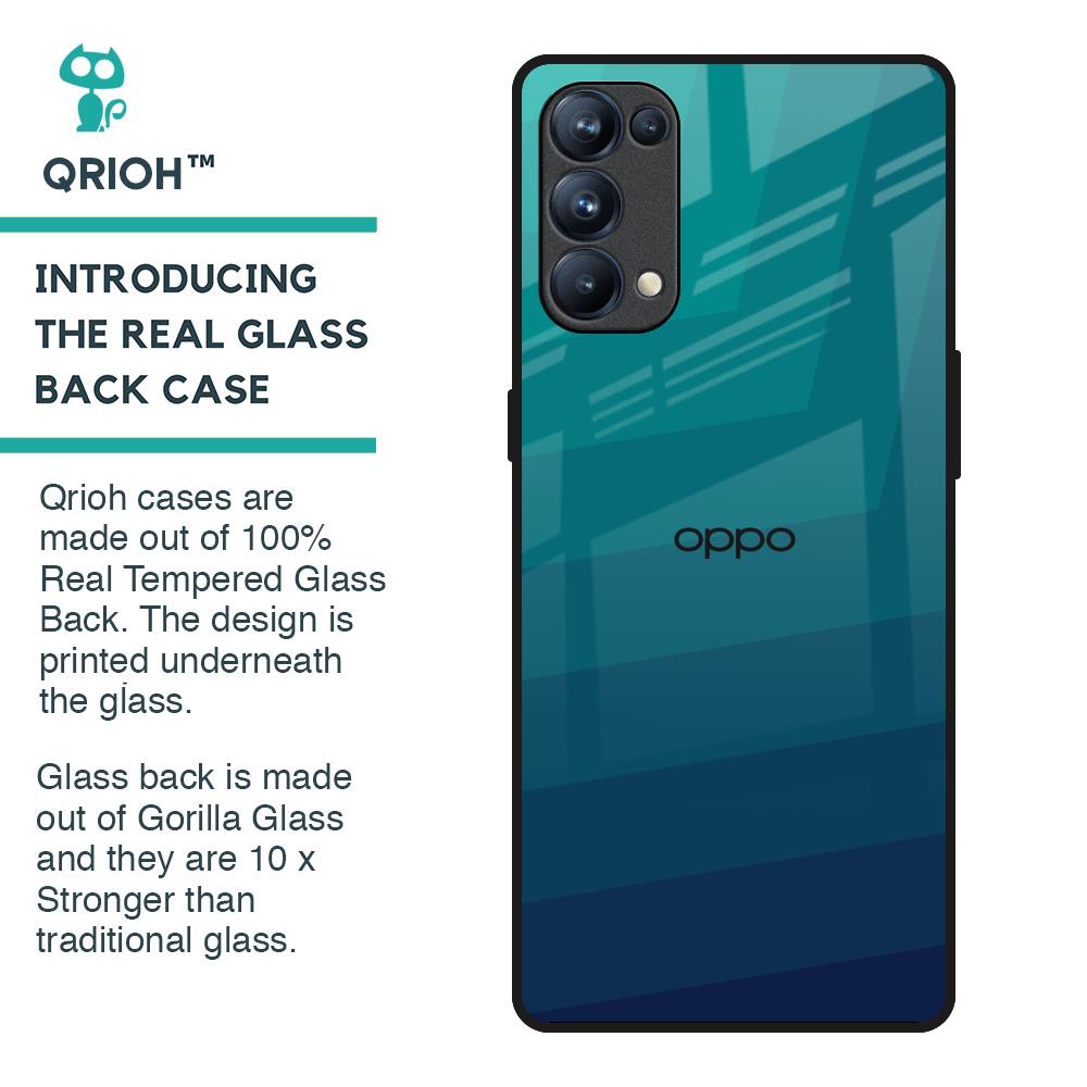 Green Triangle Pattern Glass Case for Oppo Reno5 Pro