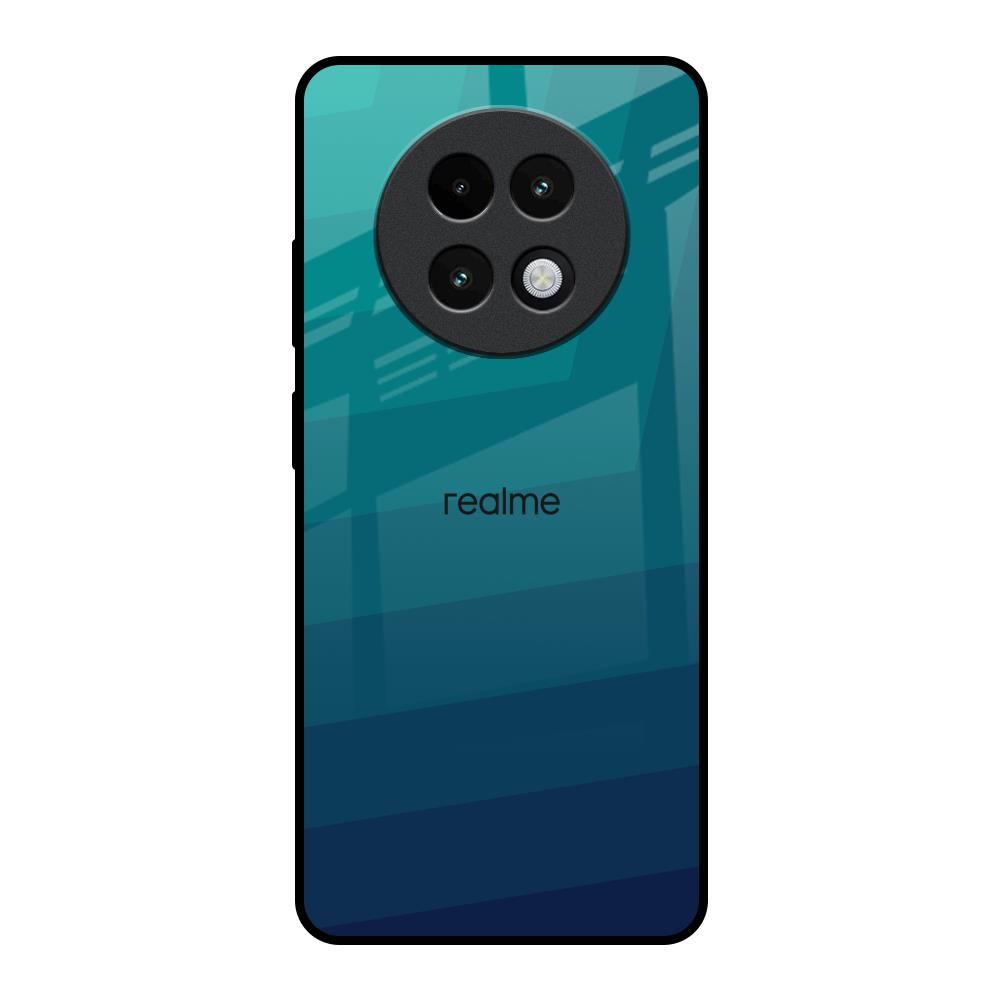Green Triangle Pattern Glass Case for Realme 13 Plus 5G