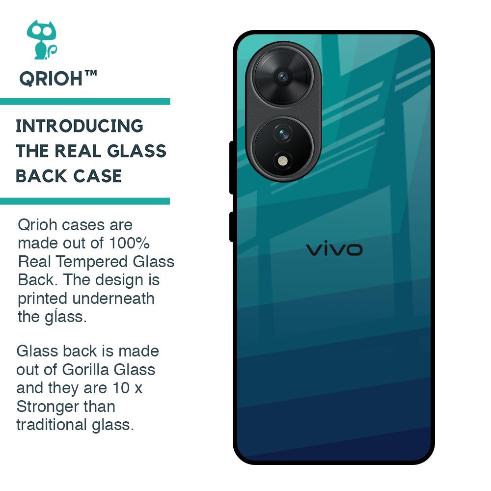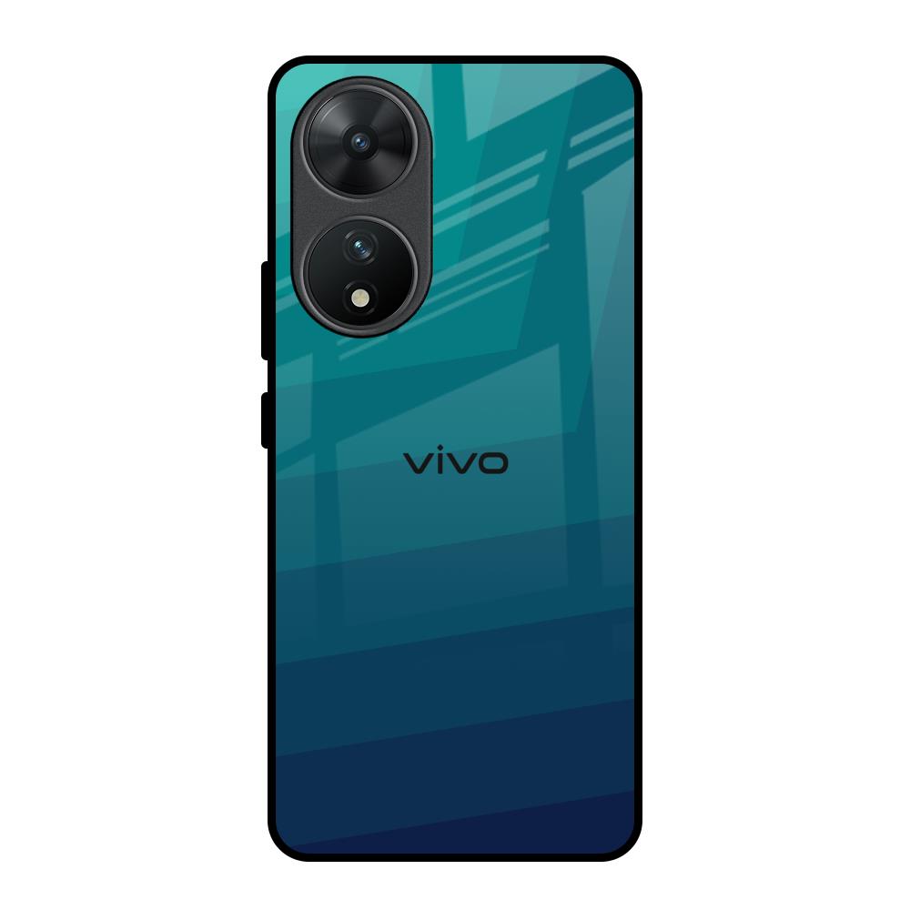 Green Triangle Pattern Glass Case for Vivo T2 5G
