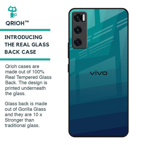 Green Triangle Pattern Glass Case for Vivo V20 SE