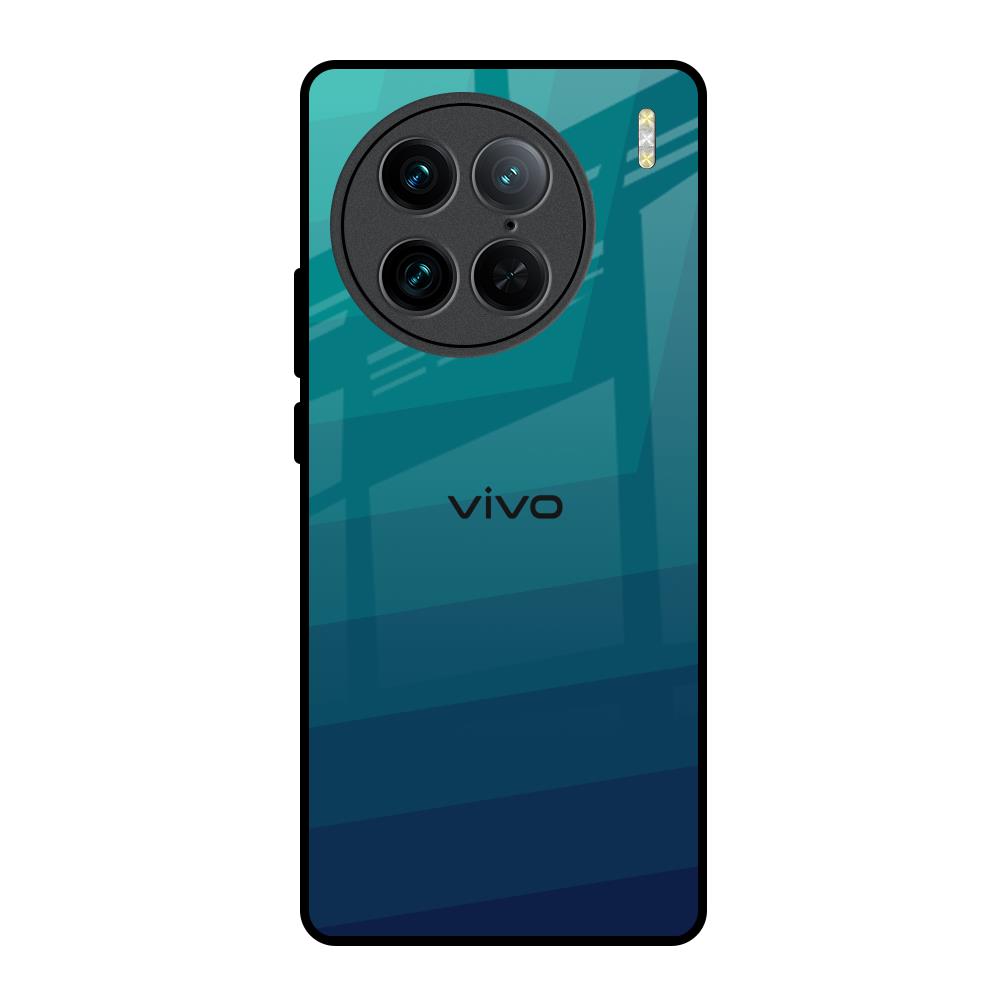 Green Triangle Pattern Glass Case for Vivo X90 Pro 5G