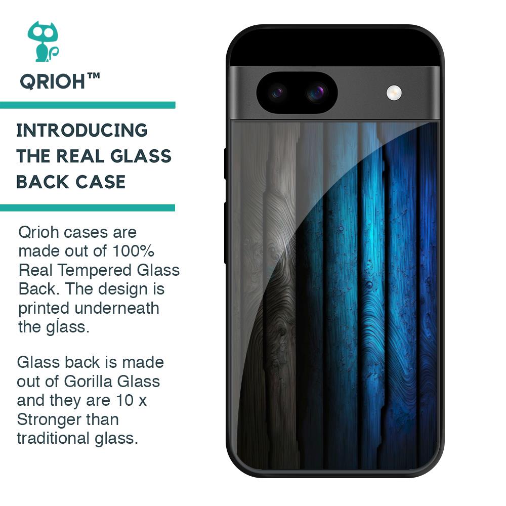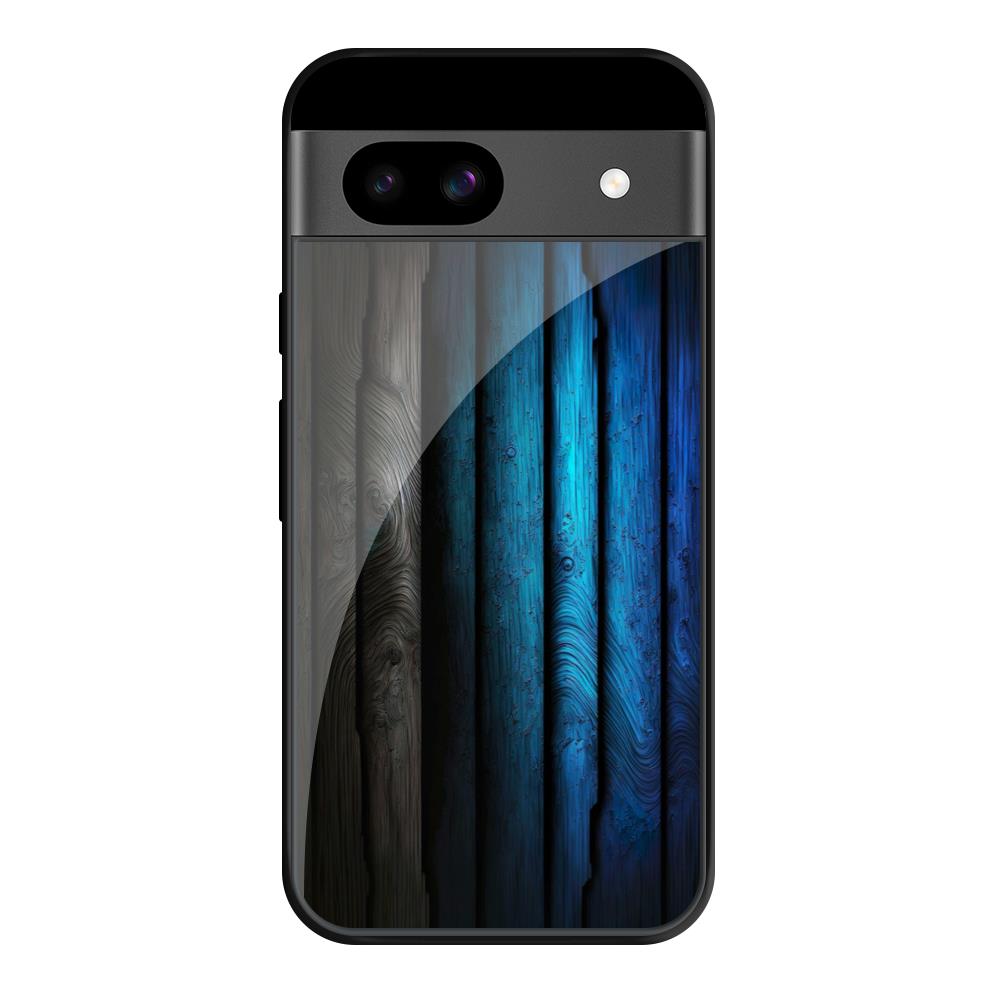 Grey & Blue Wooden Texture Glass Case for Google Pixel 8A