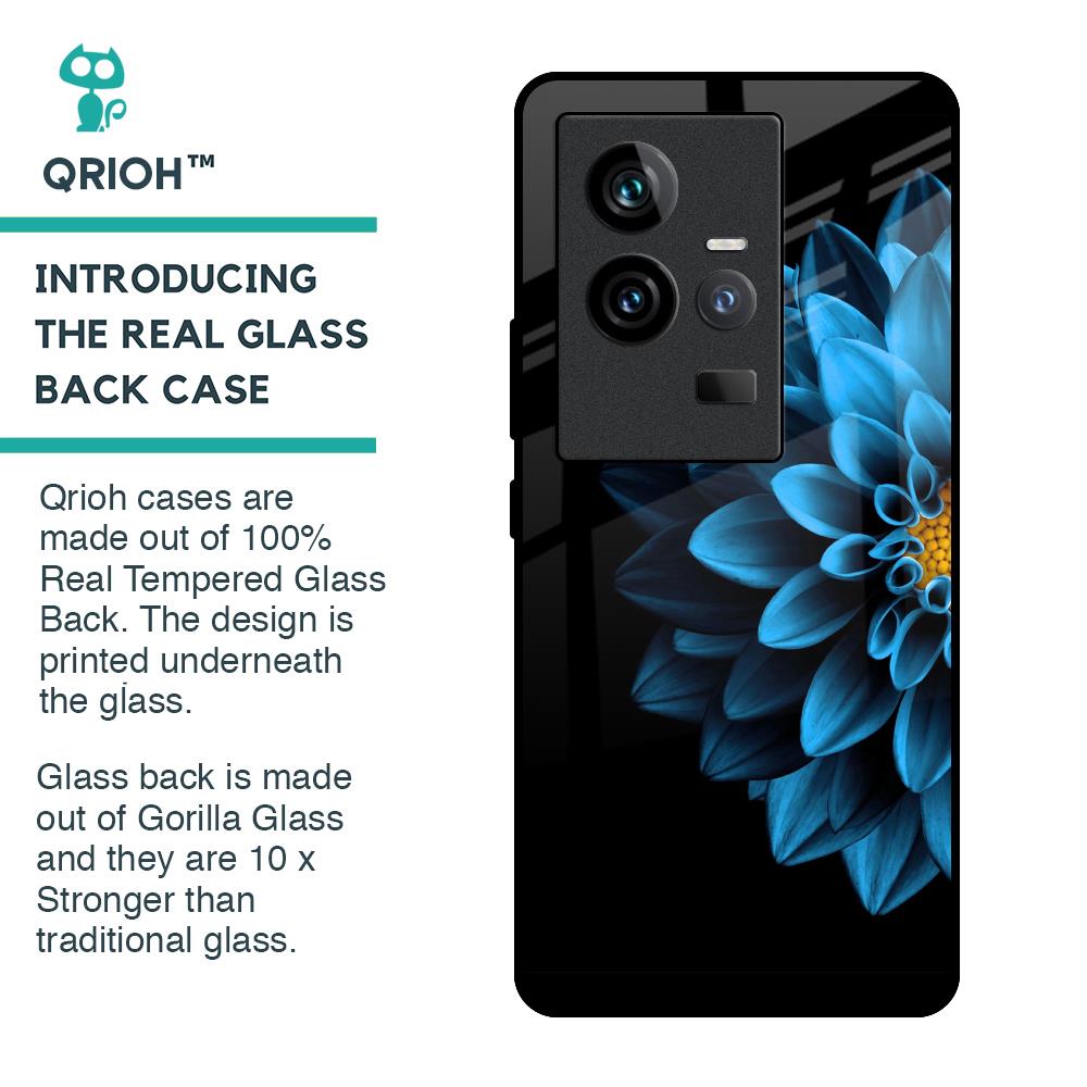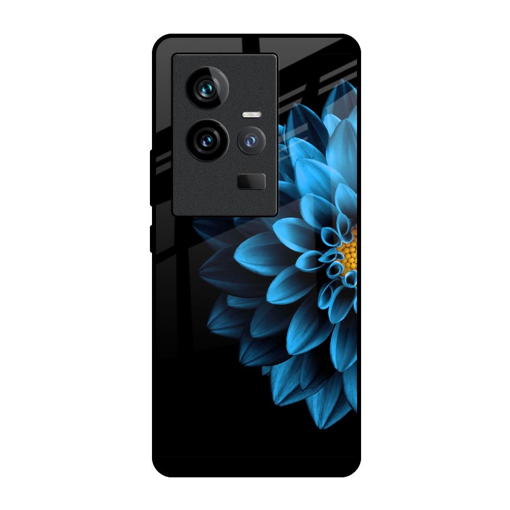 Half Blue Flower Glass Case for iQOO 11