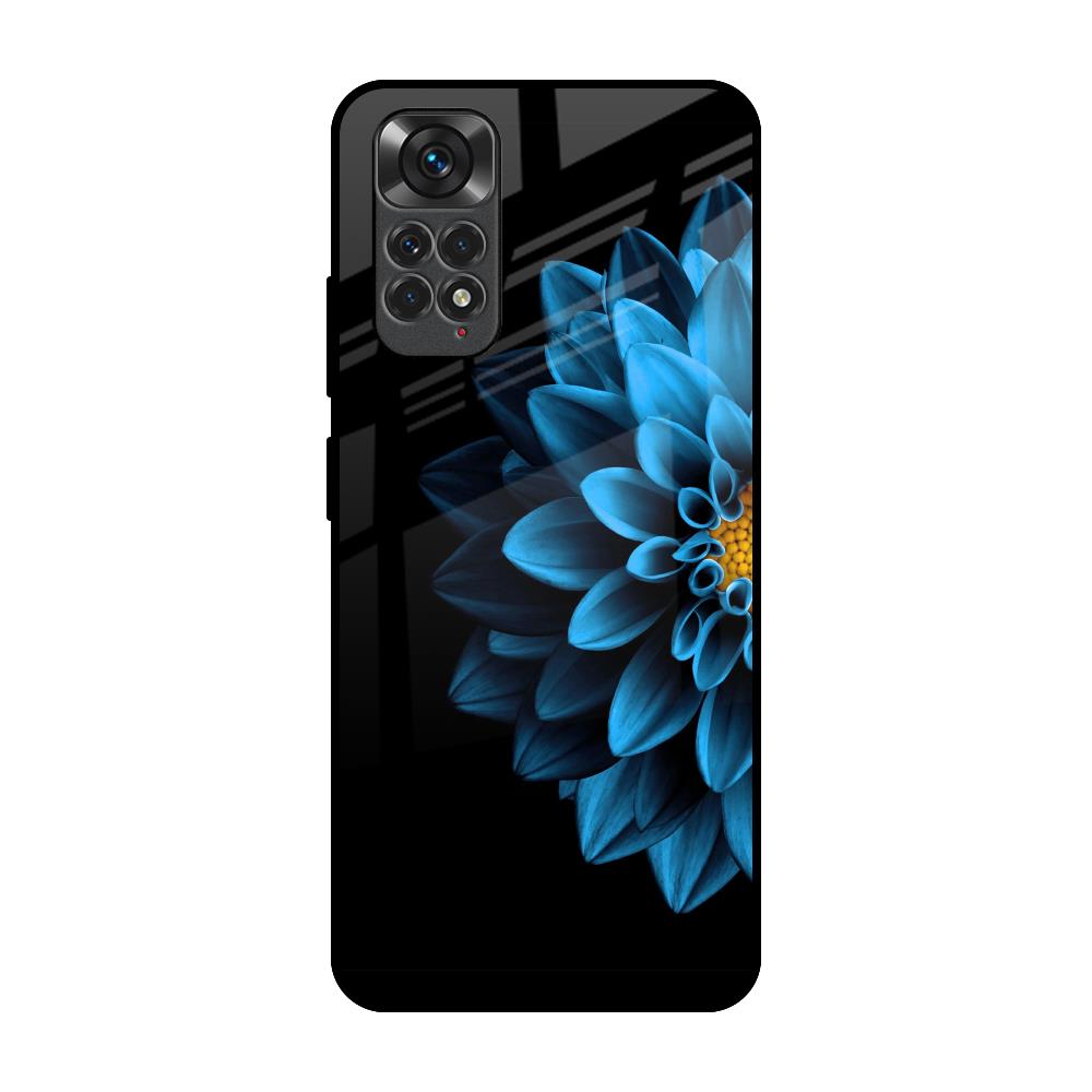 Half Blue Flower Glass Case for Redmi Note 11