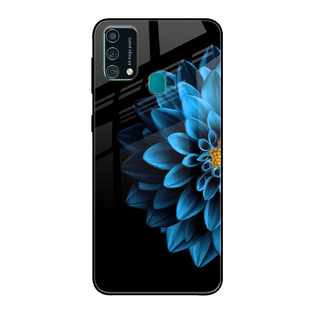 Half Blue Flower Glass Case for Samsung Galaxy F41