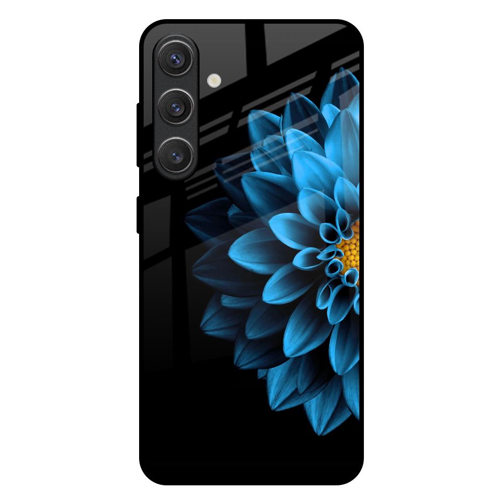 Half Blue Flower Glass Case for Samsung Galaxy S25 Plus 5G