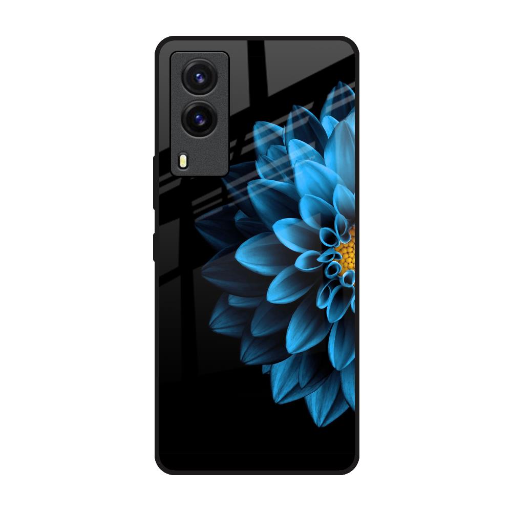 Half Blue Flower Glass Case for Vivo V21e