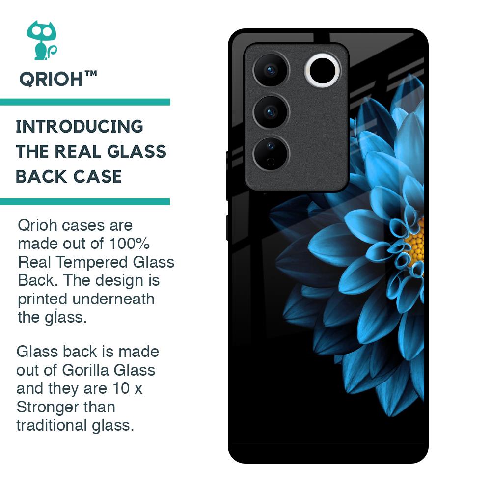 Half Blue Flower Glass Case for Vivo V27 Pro 5G