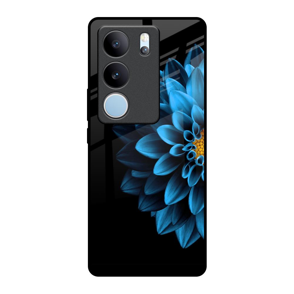 Half Blue Flower Glass Case for Vivo V29 5G