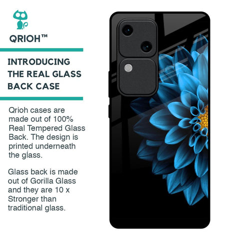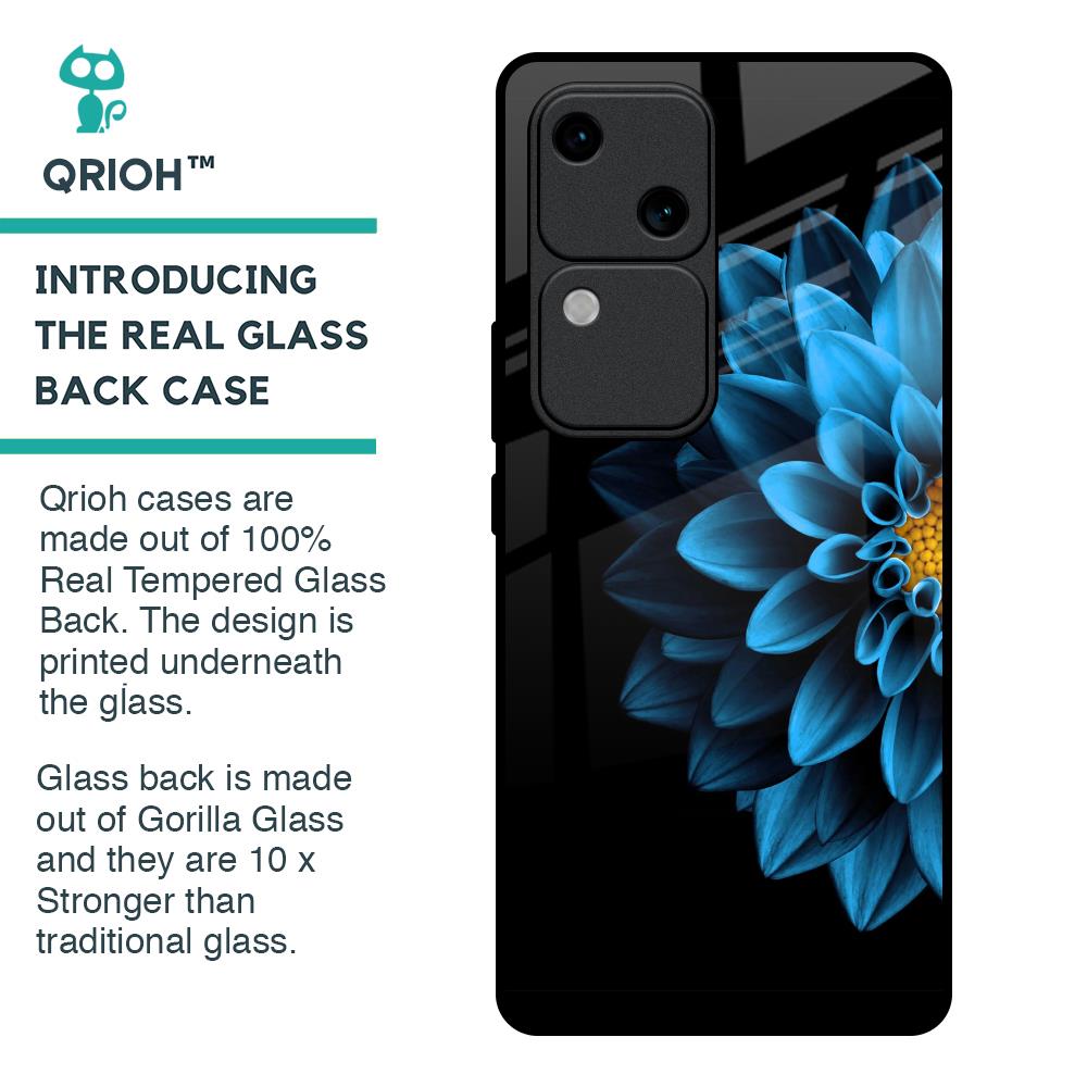 Half Blue Flower Glass Case for Vivo V30 5G