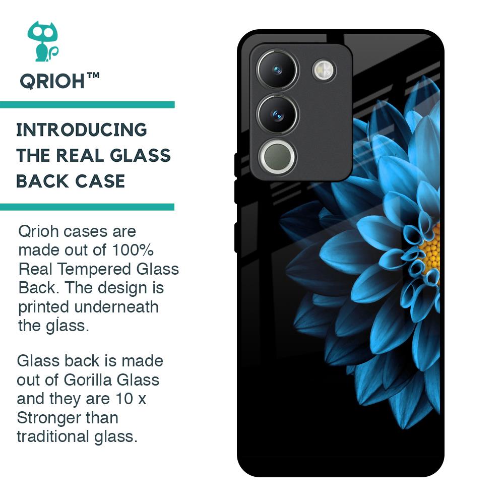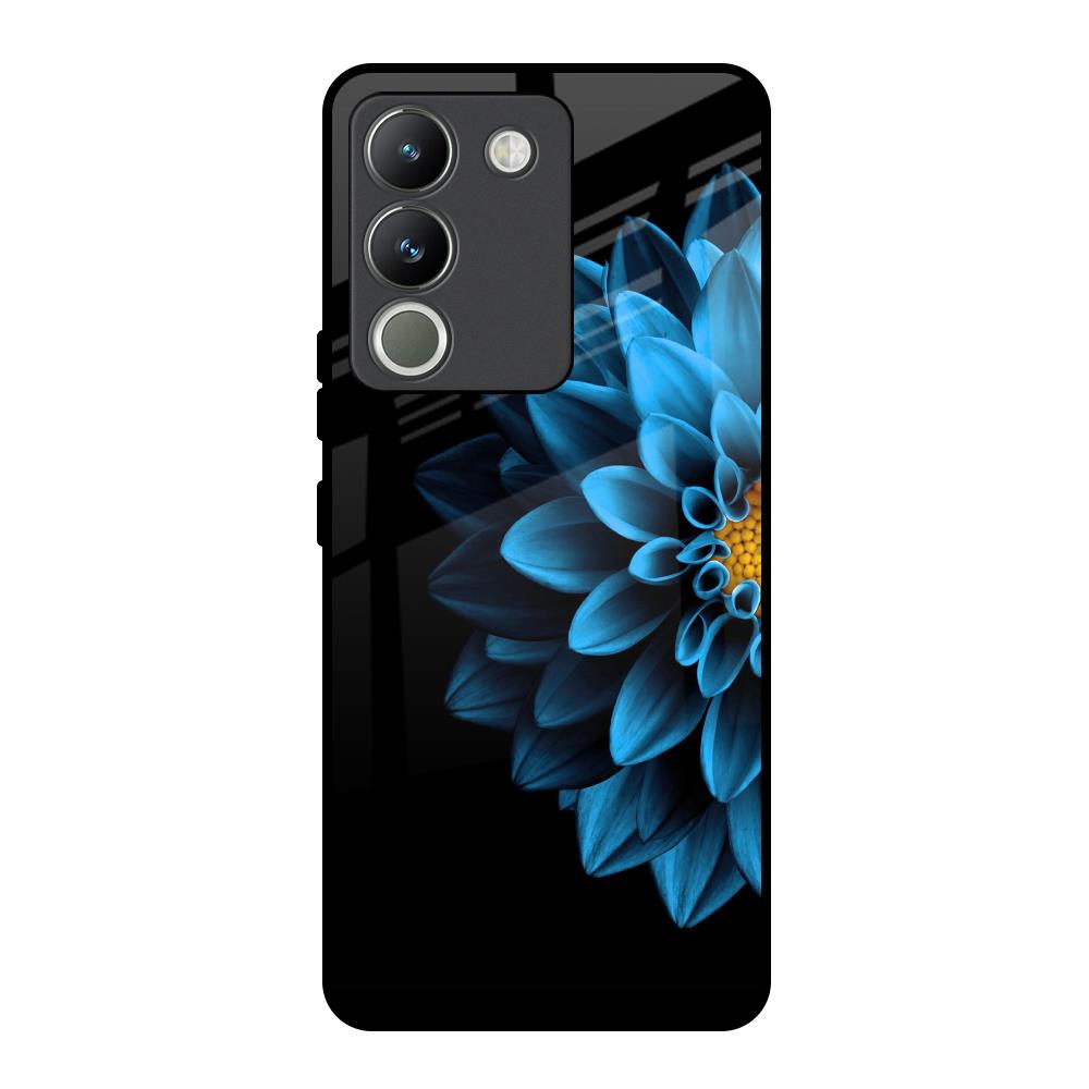 Half Blue Flower Glass Case for Vivo Y200 5G
