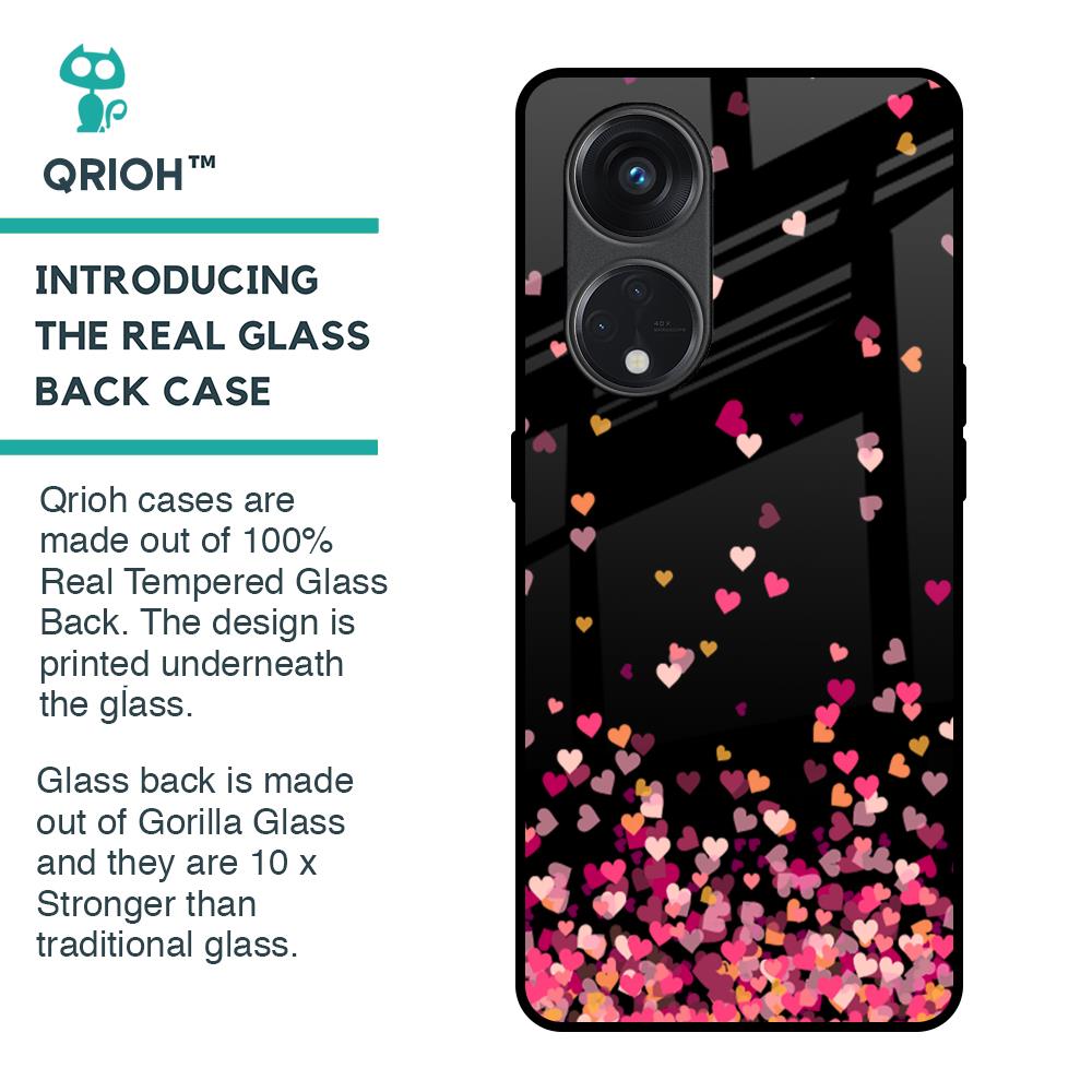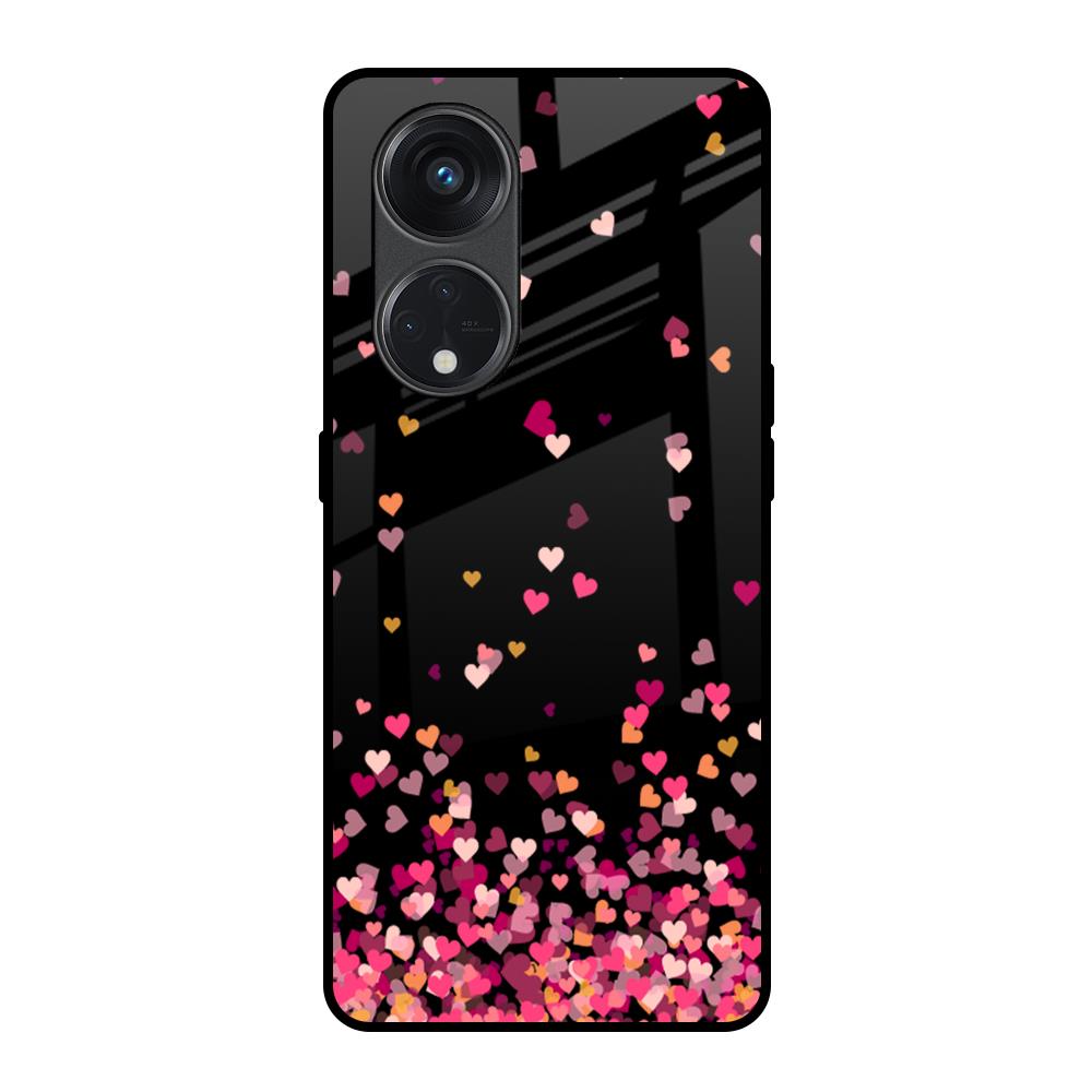 Heart Rain Fall Glass Case For Oppo Reno8T 5G