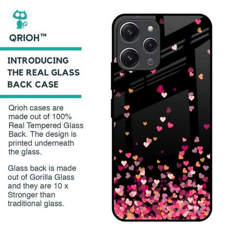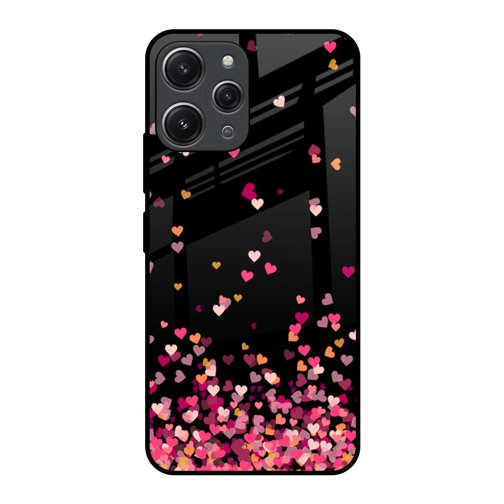 Heart Rain Fall Glass Case For Redmi 12