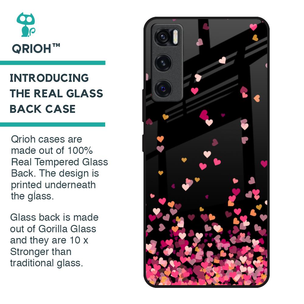Heart Rain Fall Glass Case For Vivo V20 SE