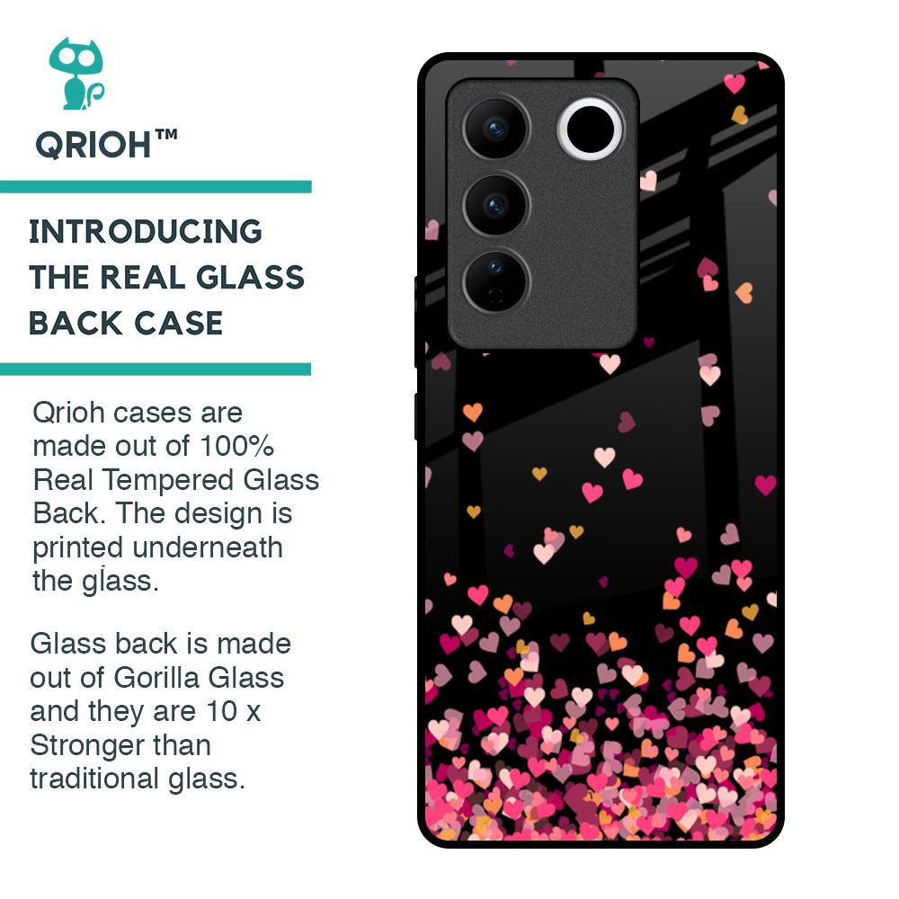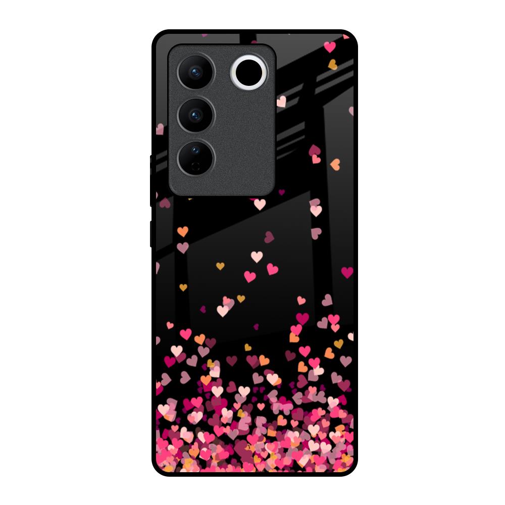 Heart Rain Fall Glass Case For Vivo V27 Pro 5G
