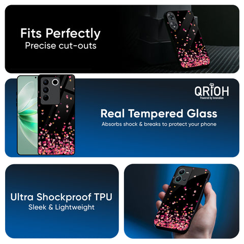 Heart Rain Fall Glass Case For Vivo X200 Pro 5G