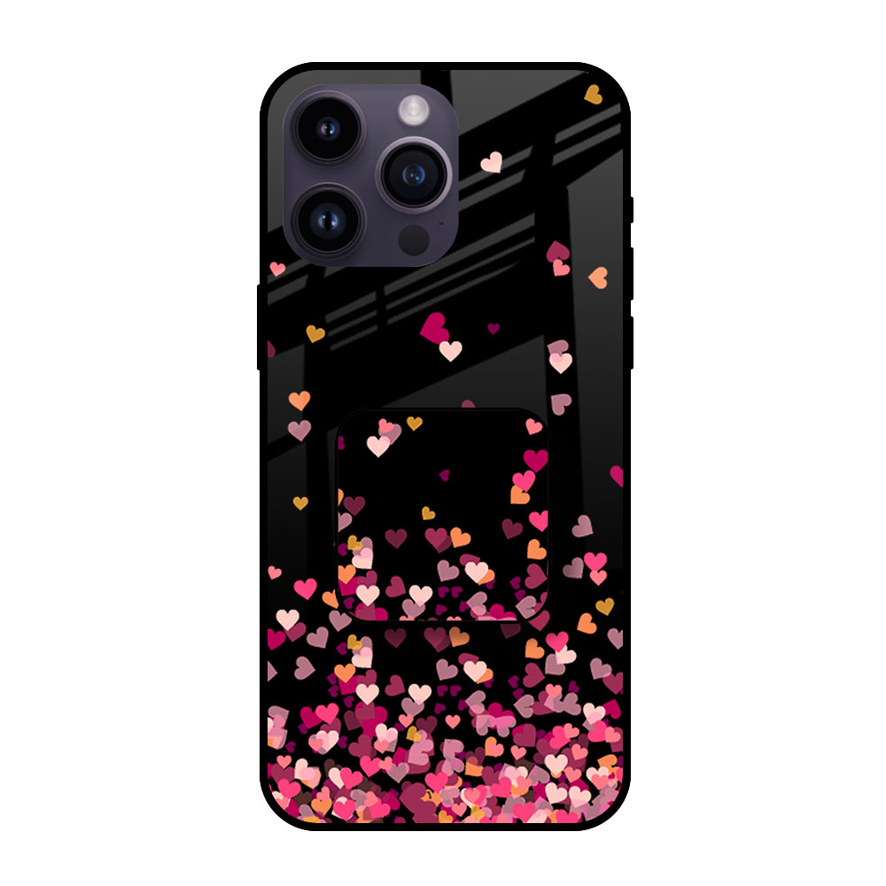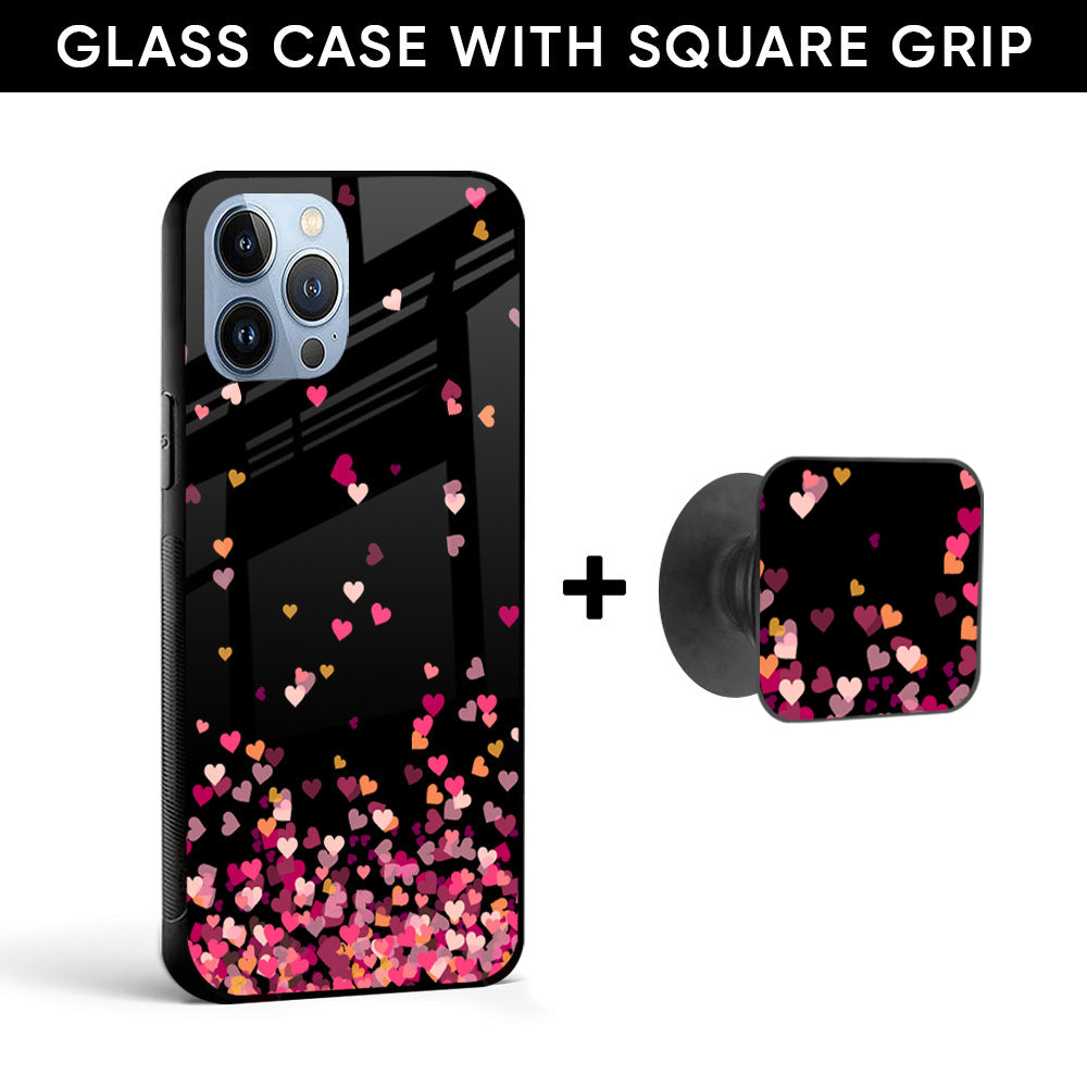 Heart Rain Fall Glass case with Square Phone Grip Combo