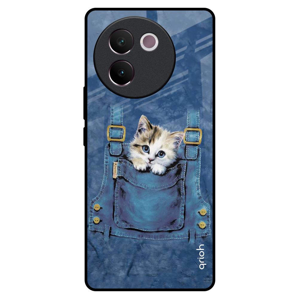 Kitty In Pocket Glass Case For Vivo V30e