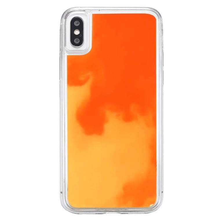 • Our Neon Sand Liquid iPhone case glows in the dark, feature mesmerizing waterfall effects. On the interior, the case is composed of fluorescent colored sand and non-toxic liquid materials.