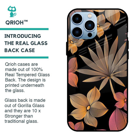 Lines Pattern Flowers Glass Case for iPhone 13 Pro Max