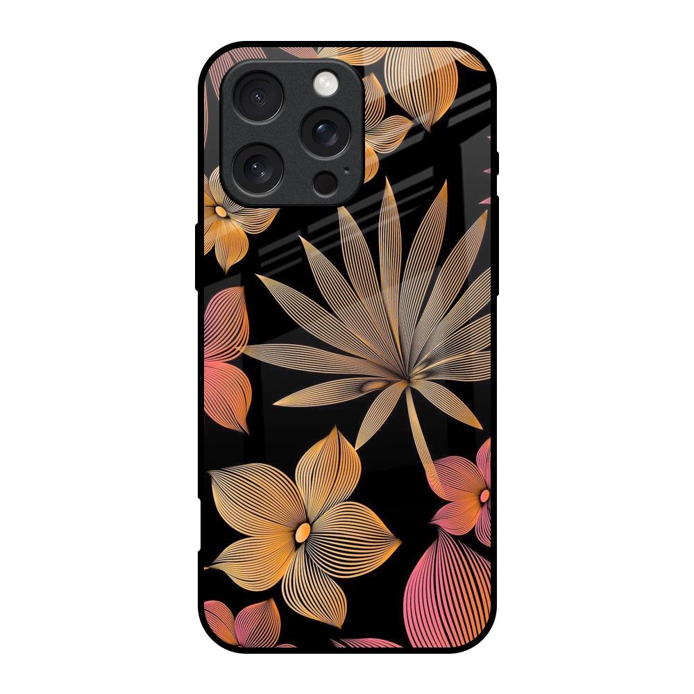Lines Pattern Flowers Glass Case for iPhone 16 Pro