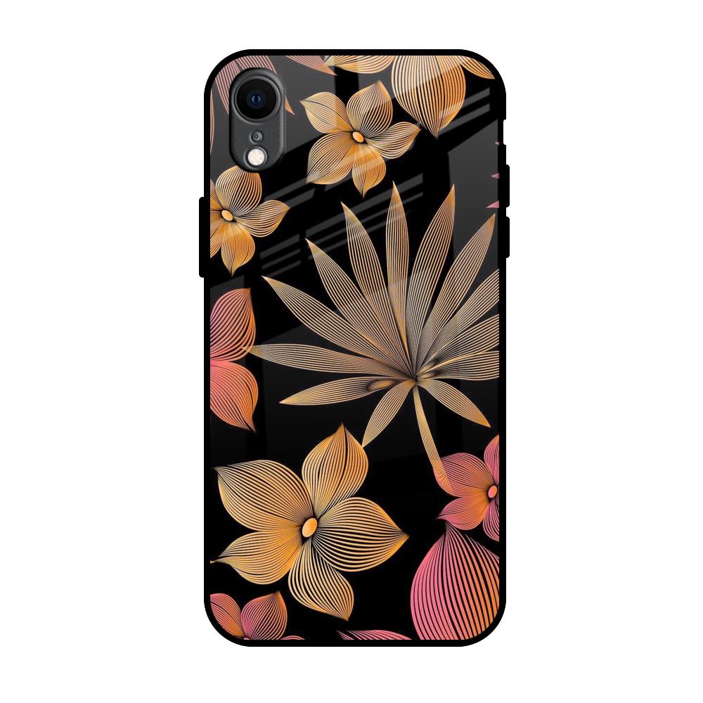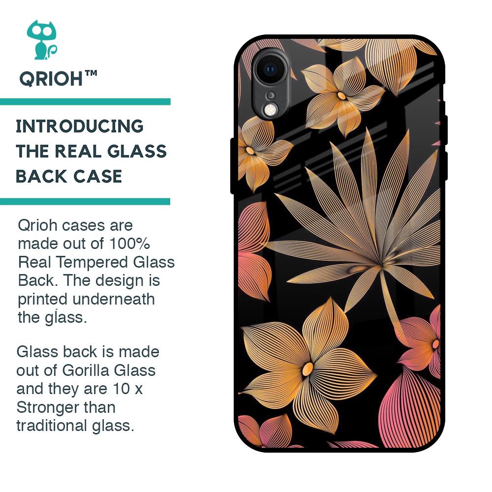 Lines Pattern Flowers Glass Case for iPhone XR